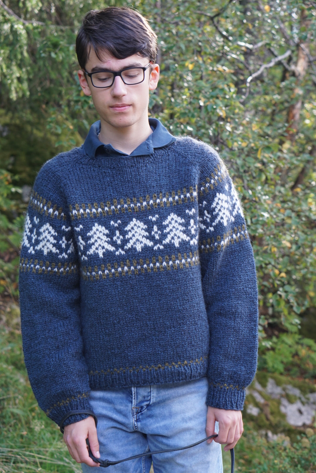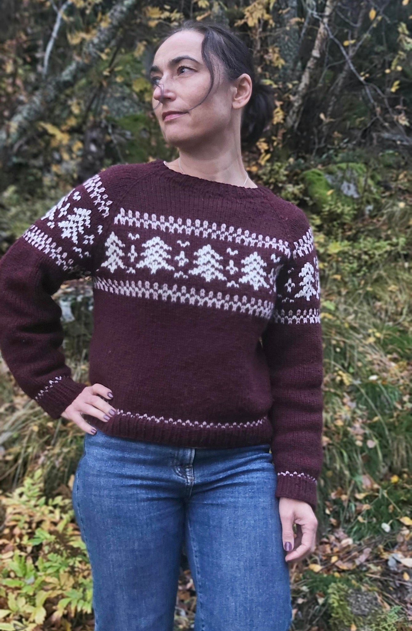 Frostskog genser er en unisex genser, som blir like fin til både dame og herre. Genseren blir god og varm, da den strikkes i enten Vams, eller dobbel tråd Finull, fra Rauma Garn.