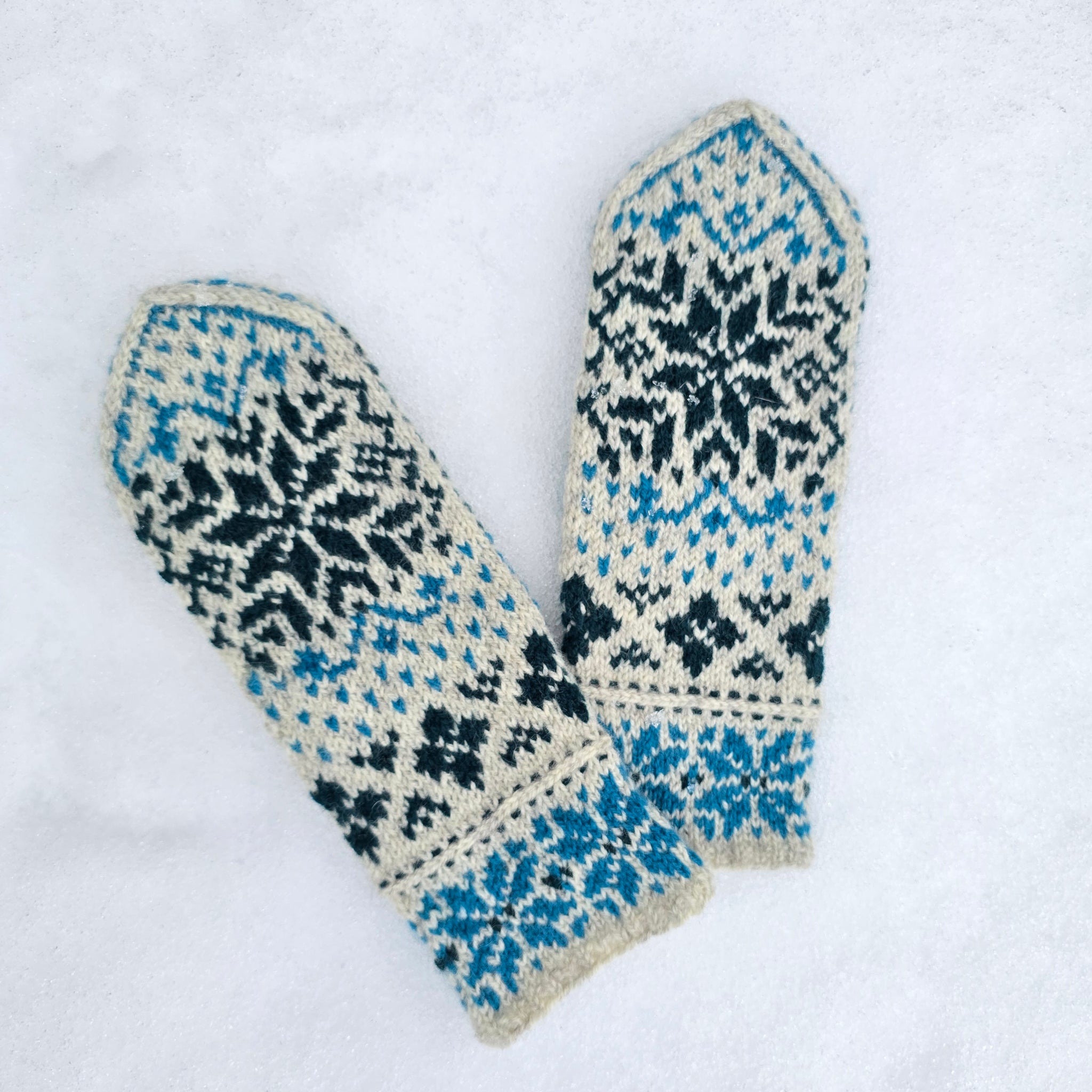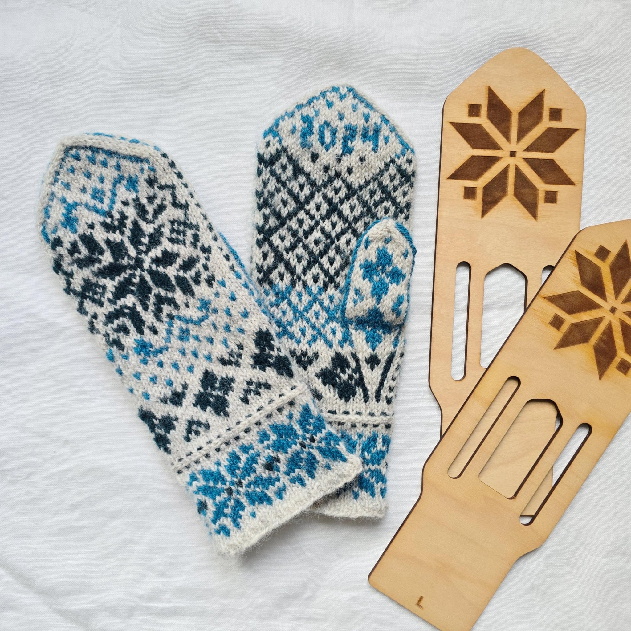 Det er viktig å sjekke strikkefasthet både i bredden og høyden underveis. Om vottene likevel ikke skulle passe optimalt tilslutt, er det enkelt å blokke og forme dem til ønsket fasong.