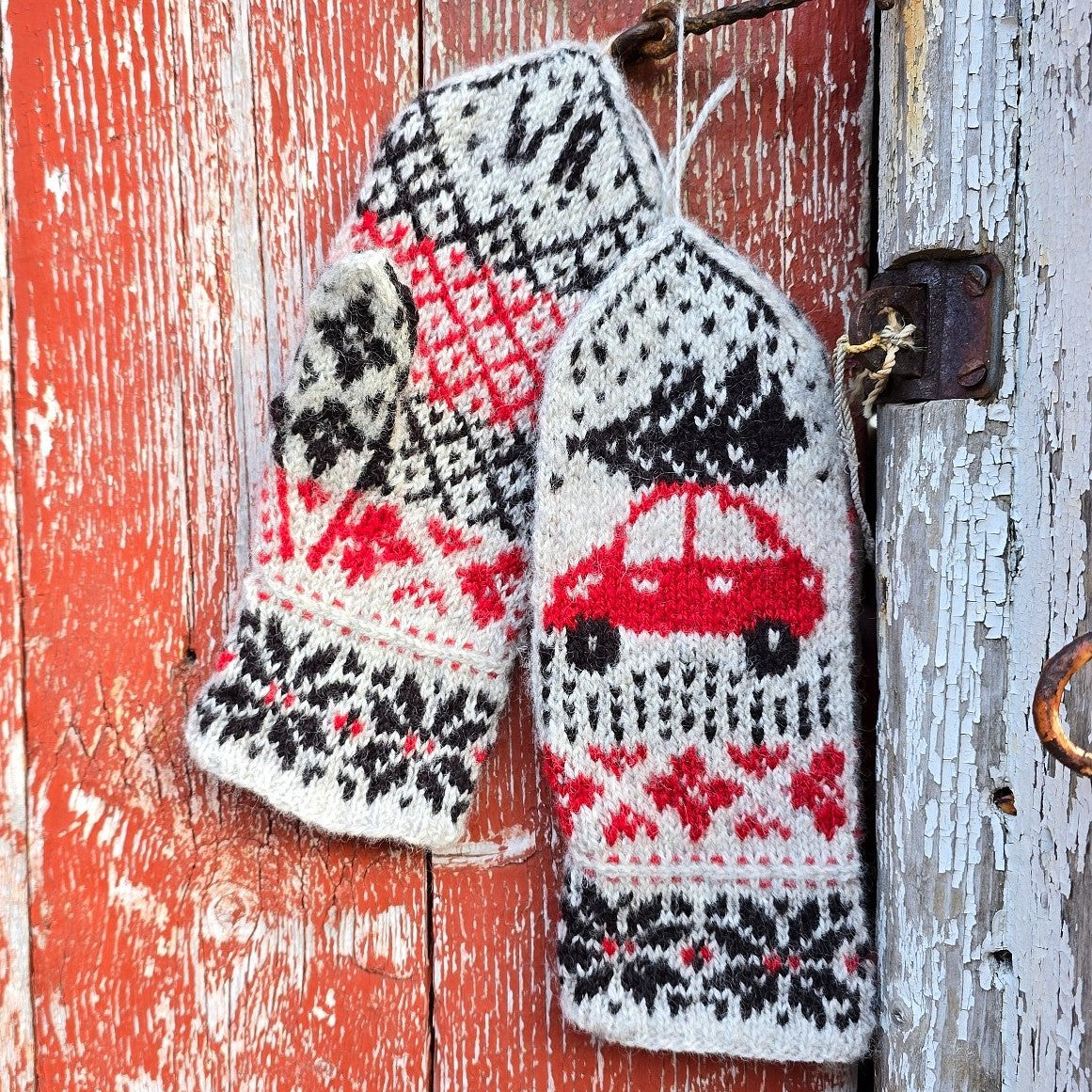 Etter at mansjetten er strikket, kan man velge mellom bil-motivet, eller et mer klassisk selbustjerne-motiv. Begge alternativene fungerer fint på både dame- og herrevotten. I håndflaten kan man strikke inn initialer eller årstall i toppen av votten. Oppskriften inneholder beskrivelse og diagram av tall og bokstaver, slik at du enkelt selv kan tilpasse votten individuelt til mottaker, eller deg selv.
