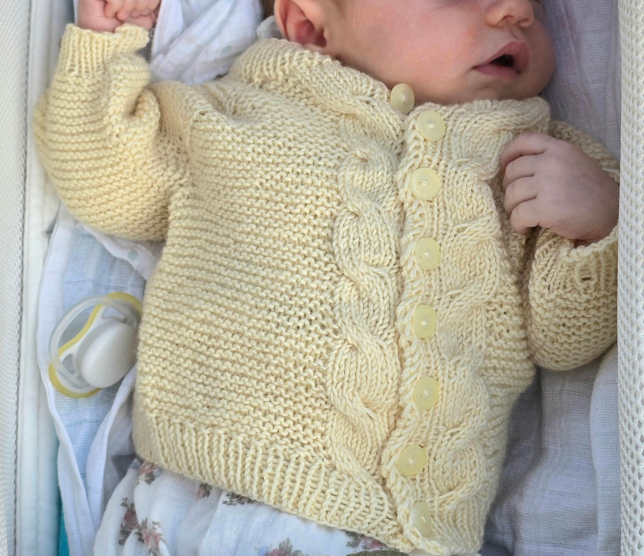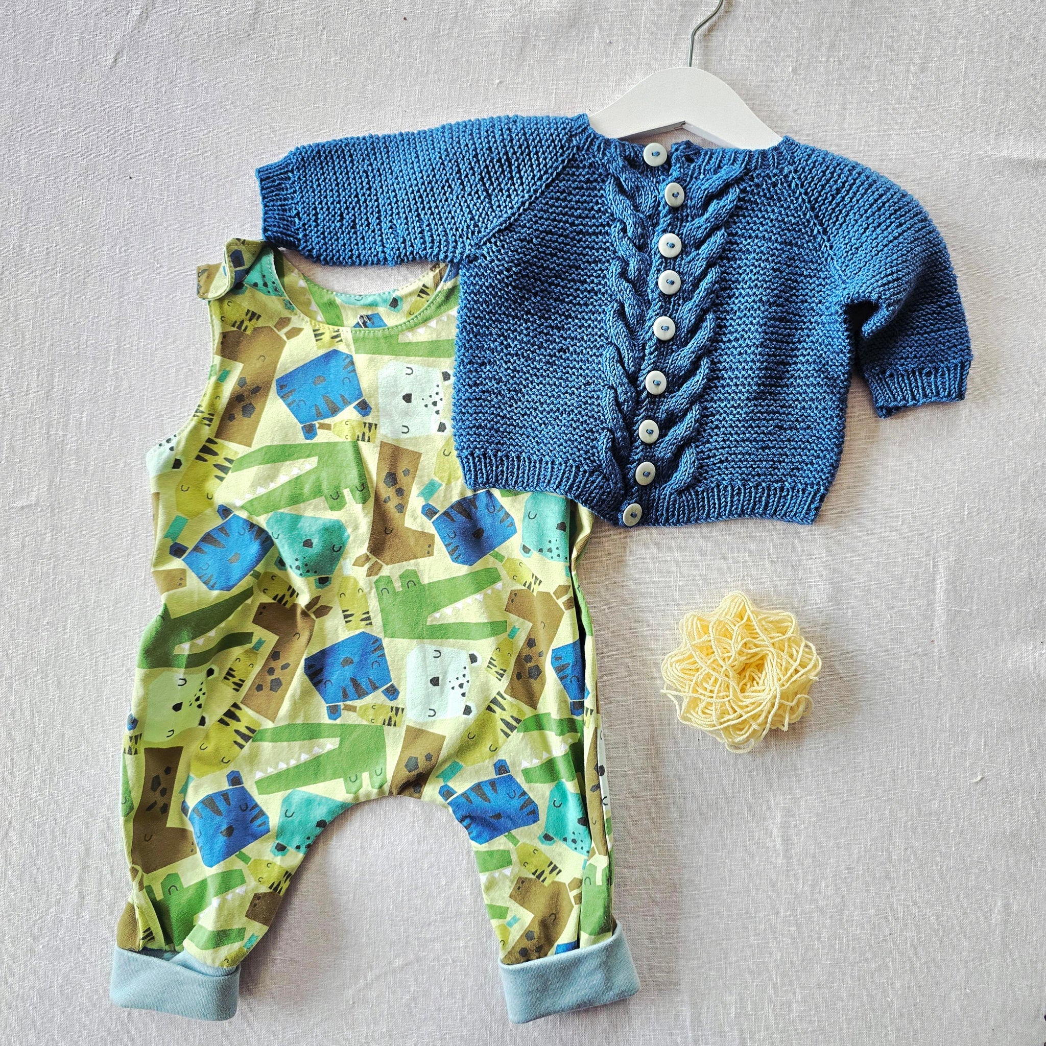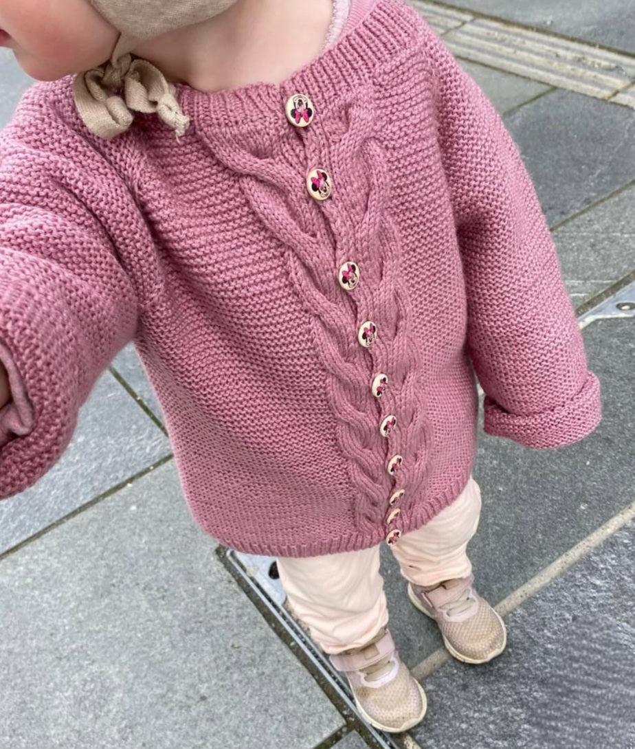 Johannesjakke er en koselig rillejakke til de aller minste. Navnet kan tolkes både som Johannes sin jakke, eller Johanne sin jakke, og tanken er at jakken kan brukes like godt av både gutt og jente. Jakken strikkes ovenfra og ned. Halsutringning formes ved at man øker masker inn mot midten mens man strikker jakken frem og tilbake. Så strikkes det raglan, og flettemønster, knappestolpen strikkes samtidig. Masker settes av til ermer, mens bolen strikkes ferdig. Flettemønsteret og knappehullene beskrives med diagram. Velg om du ønsker knapper hele veien ned, eller kun på bærestykket. Det kan strikkes noen vendepinner ved hjelp av German Short Rows på bol, for å unngå at fletten lager en spiss midt foran på jakken, siden flettene bygger litt mer i høyden enn rillestrikkpartiet. Ermer strikkes med riller. Tilslutt tar man opp masker til halskanten og strikker på den tilslutt, inkludert det siste knappehullet.