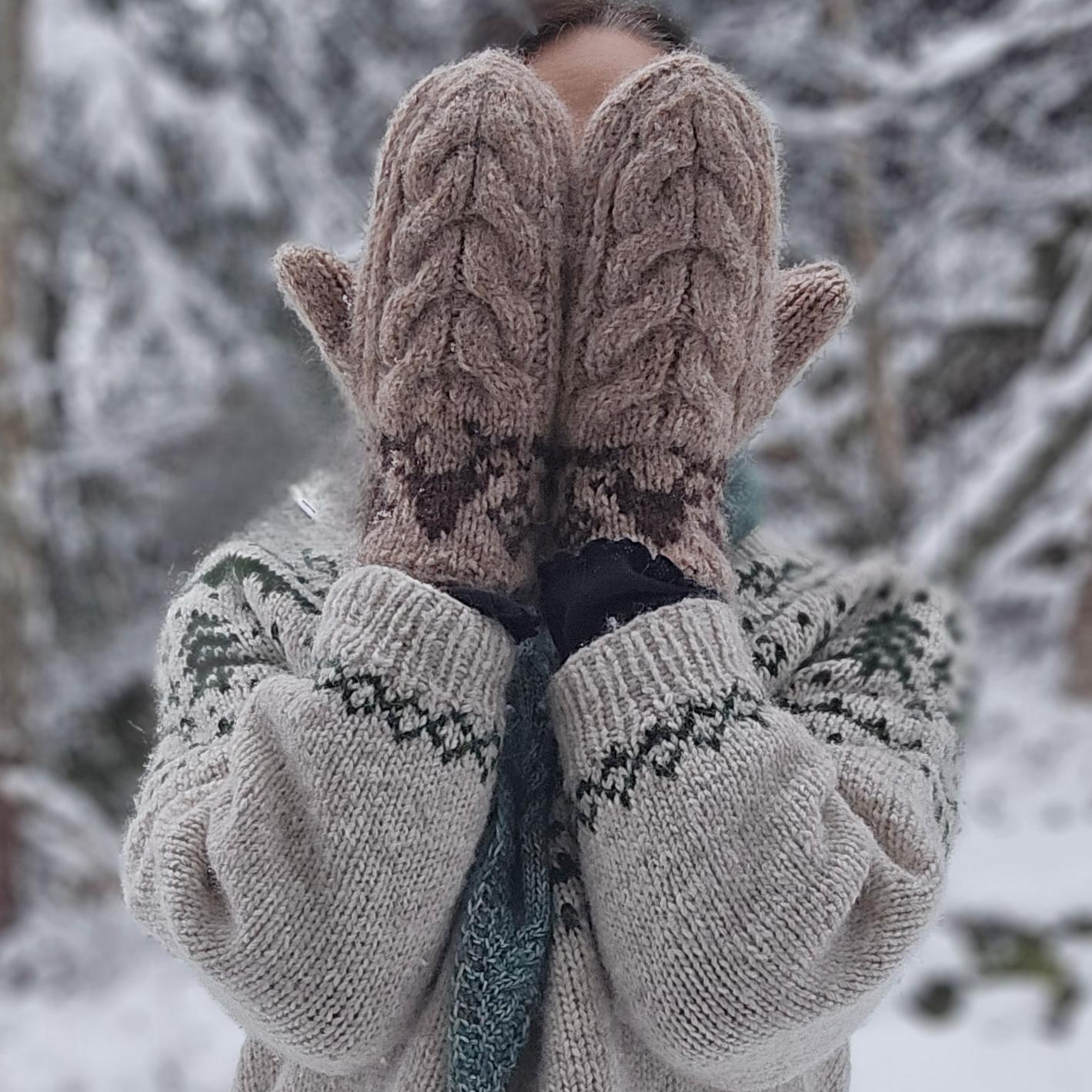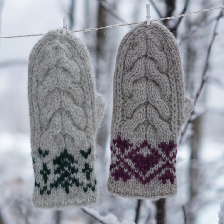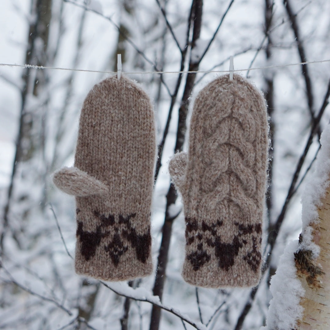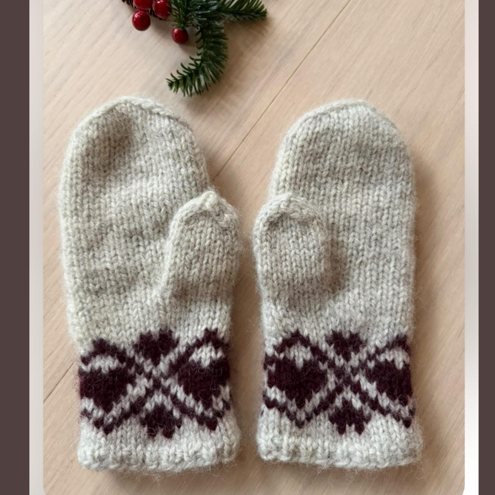 Julemorgenvotter er raske å strikke i tjukt garn, og har fine detaljer med typisk nordiske motiv, og fletter. De blir gode og varme når de toves tilslutt. Mønsterstrikk-delen på mansjetten gjør at vottene her blir litt strammere, og derfor sitter godt på. Vottene strikkes i Vams eller dobbel tråd Finull, og kommer i både dame og herrestørrelse.