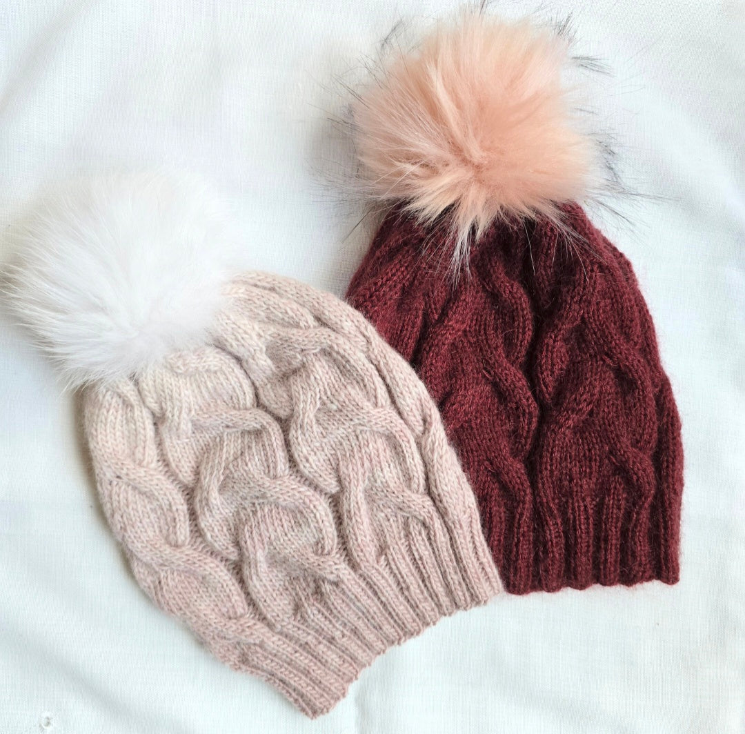 Mål gjerne hodeomkrets på mottakeren til lua før du starter. Merk at det trengs en flettepinne for å strikke flettene.