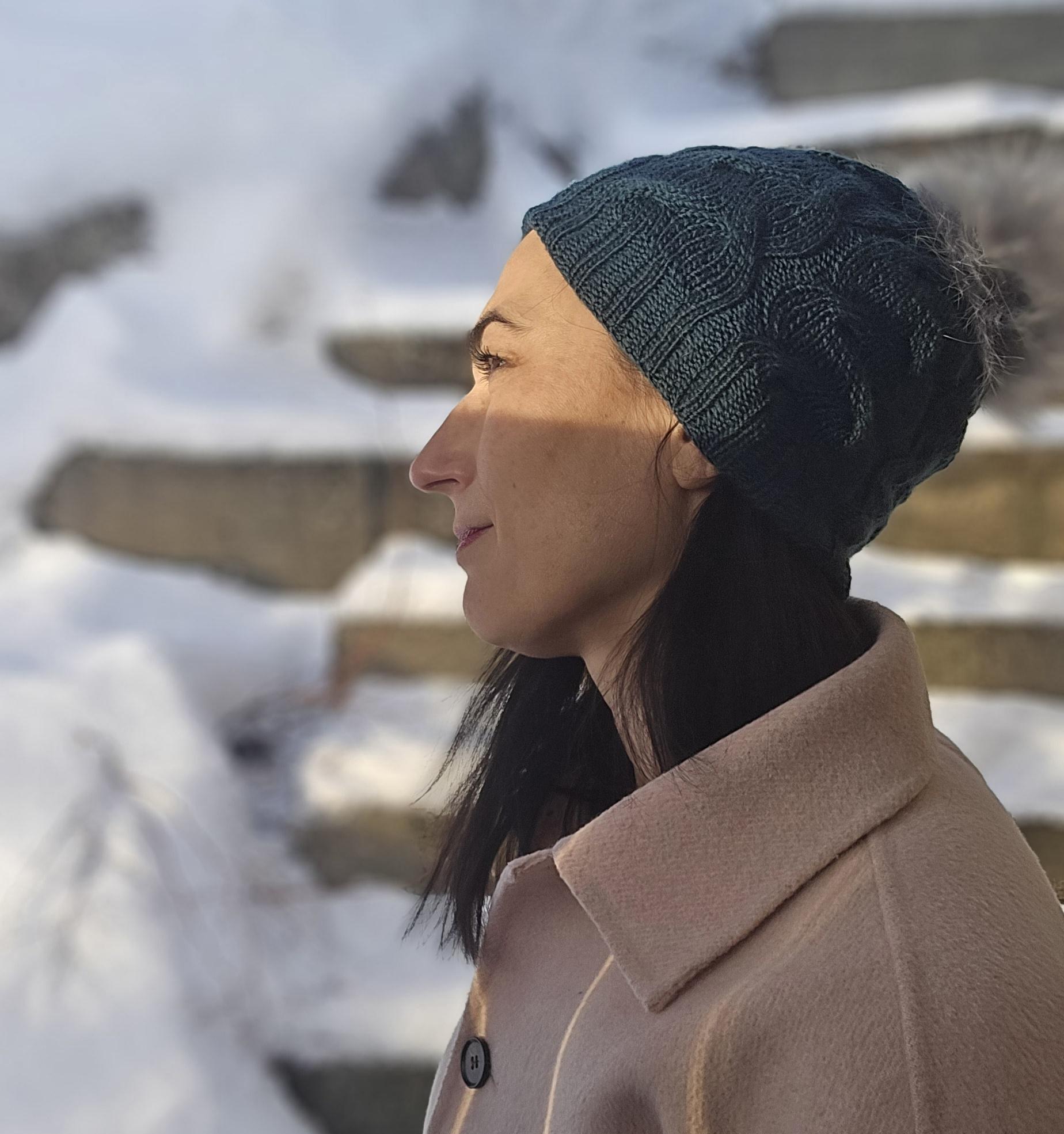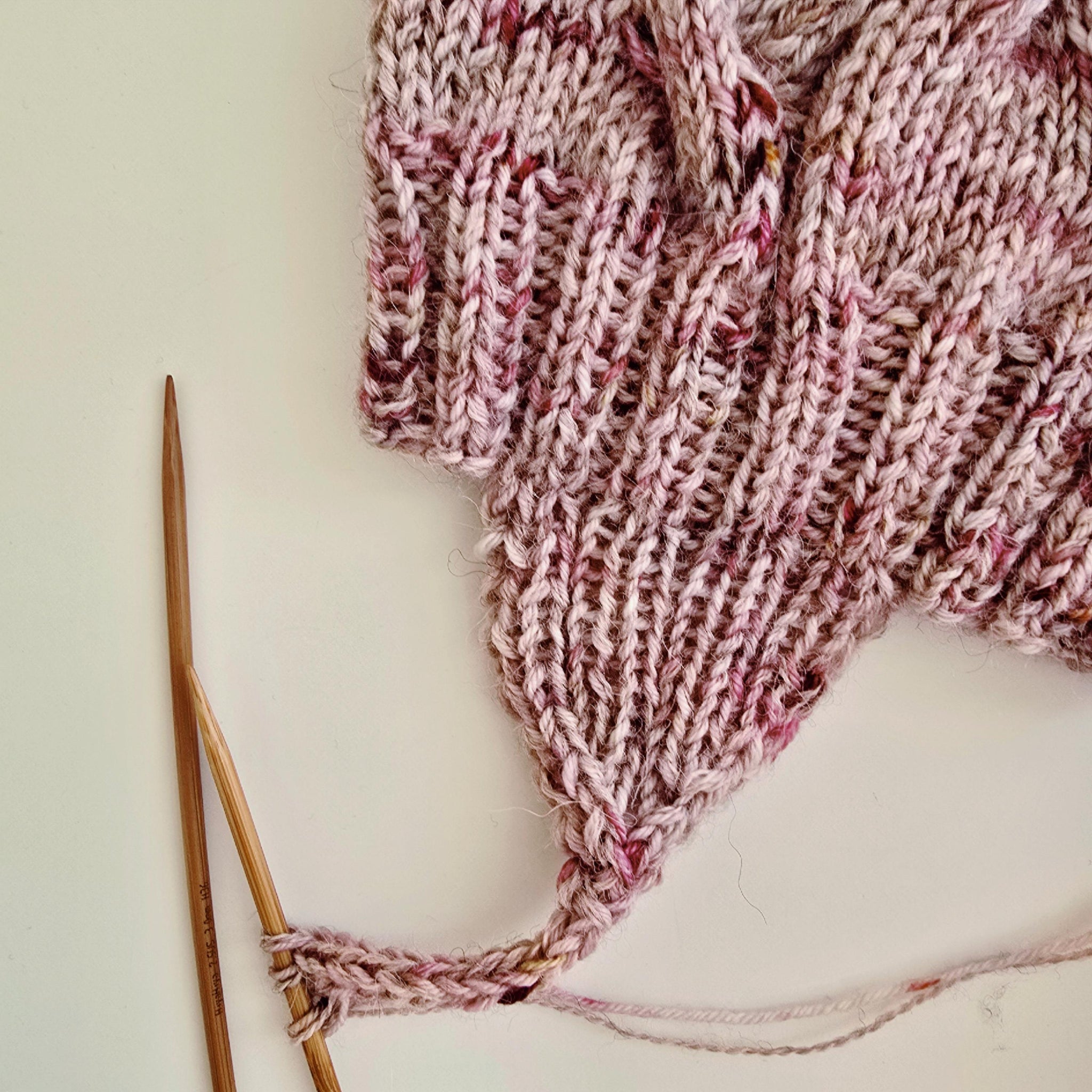 Merinoull fra Sandes Garn, 50 g = 105 m. Alternativ: Merino Extra Fine fra Drops, eller Merinos Fingering fra Lise Tailor. Sistnevnte kan også holdes sammen med en tråd mohair, for en tettere lue.