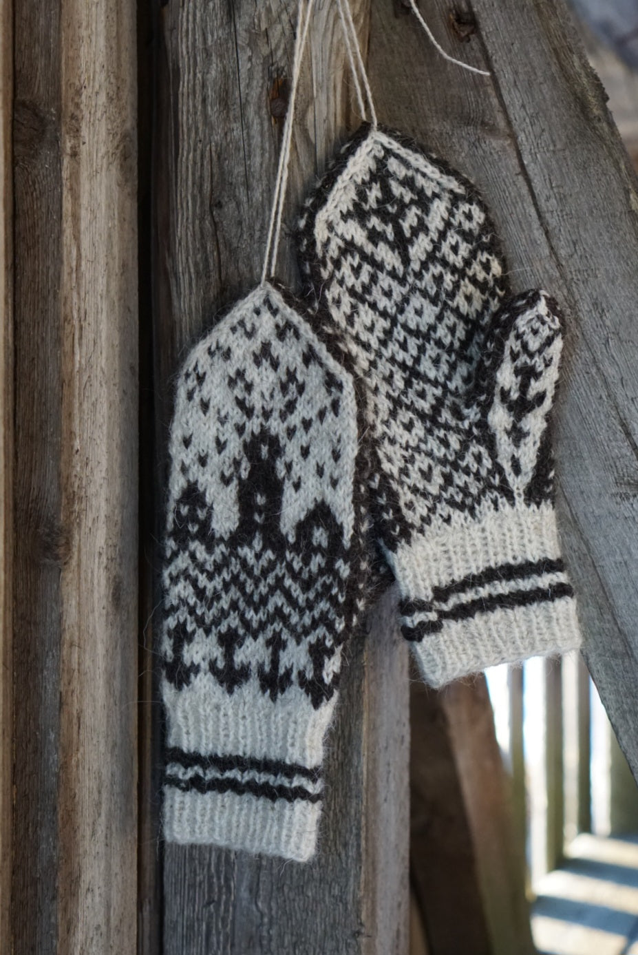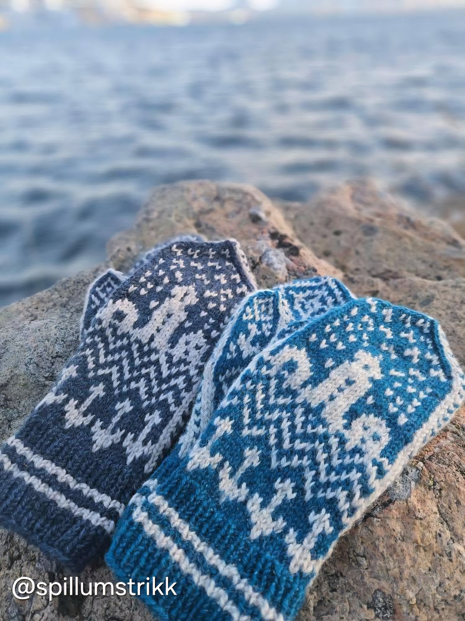 Vottene strikkes i ren ull, slik at de holder hendene varme, selv hvis de blir våte. Jeg har brukt Villull fra sauene på Nerklubben Gård på Frøya. Garnet er spunnet ved Selbu Spinneri, og dette er et helt spesielt og unikt norsk garn, rustikt og slitesterkt, kanskje akkurat som oss kystmennesker selv.