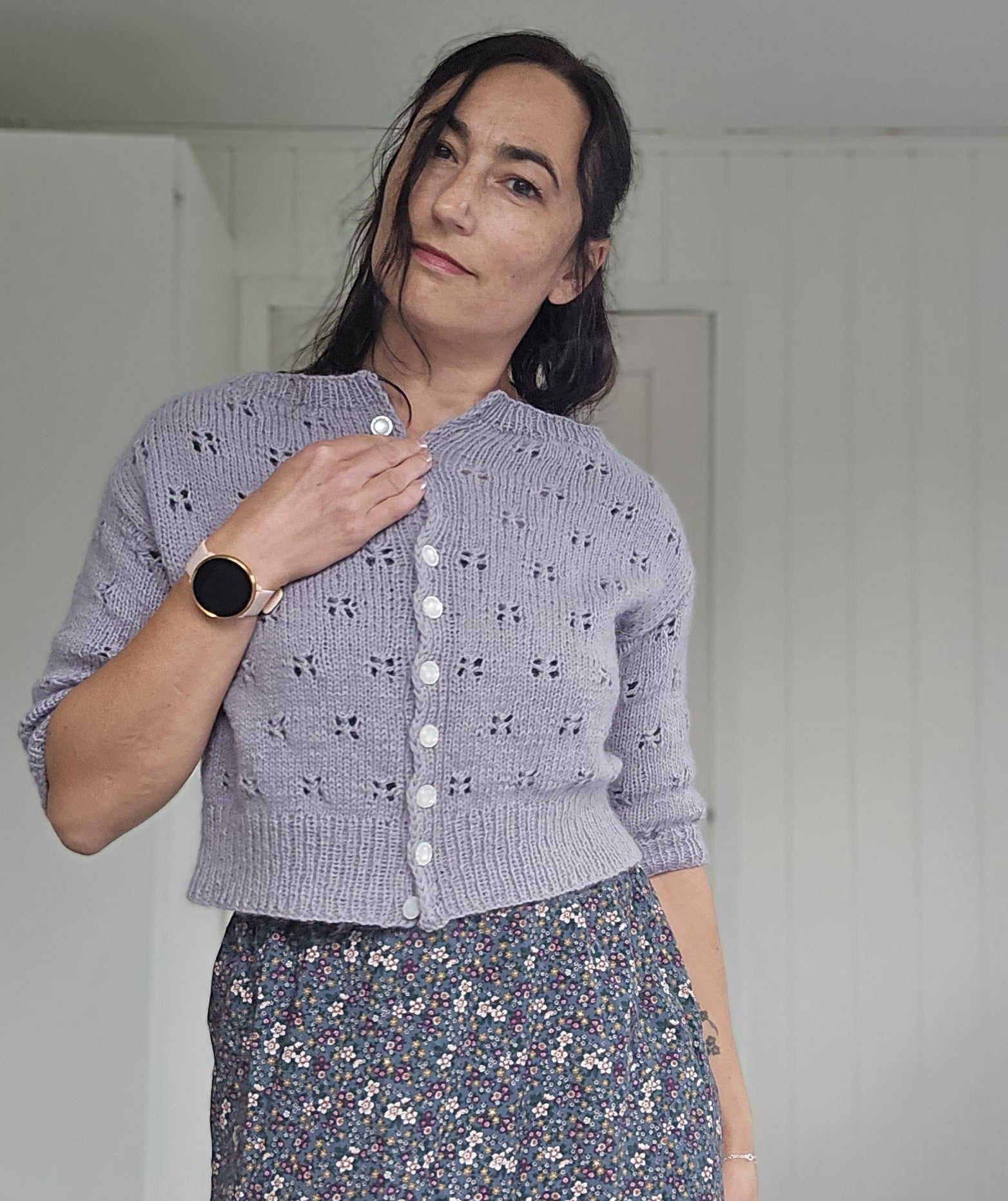 Lilacjakke er en nostalgisk, kort jakke med blomstermønster og riller over hele jakken. Den strikkes ovenfra og ned, frem og tilbake, og skuldrene konstrueres med sadelskulder. Ermemasker tas opp når bærestykke og bol er ferdig strikket, og partiet øverst på ermer formes ved hjelp av German short rows. Ermene kan strikkes med ¾ dels lengde, eller med hel lengde.